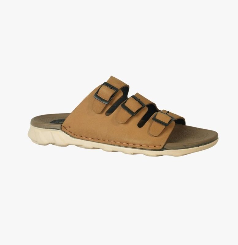 Men’s Triple-Strap Tan Leather Comfort Sandal