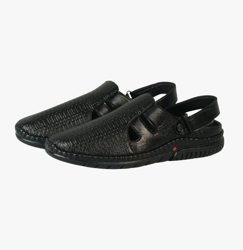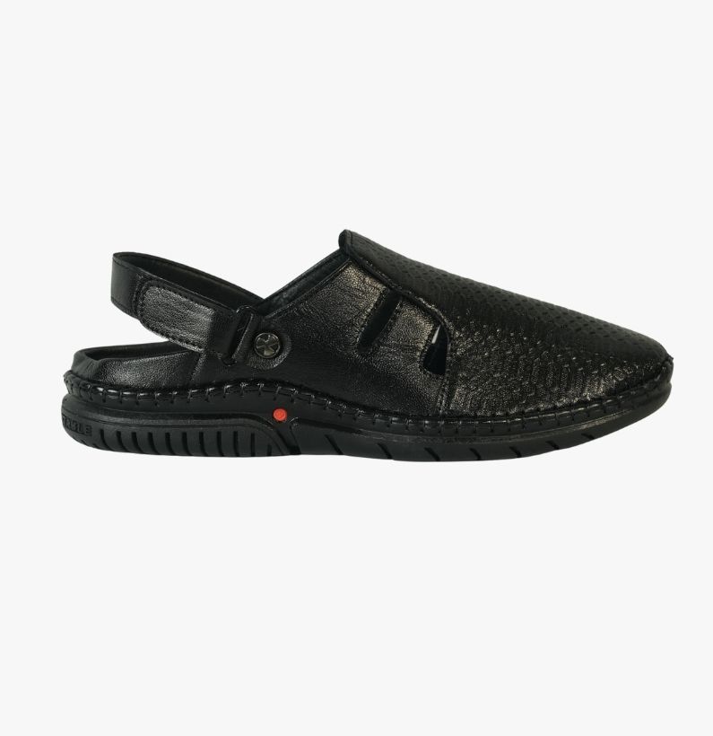Men’s Black Leather Sacchi (Open-Side Slingback Design)