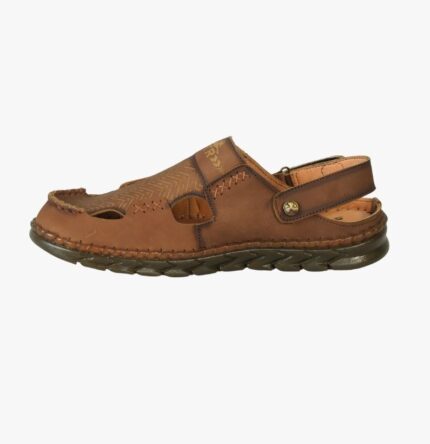 Comfortable brown leather sandal featuring a flexible sole, breathable cut-out design, and adjustable back strap. Perfect for daily wear, summer use, and casual outdoor activities.